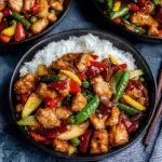 Kung Pao Chicken is a tantalizing stir-fry that brings together tender chicken, crunchy peanuts, and vibrant vegetables in a glossy, savory sauce. This dish offers an exciting balance of flavors—spicy, sweet, and savory—that will transport your taste buds straight to the heart of Sichuan cuisine. Perfect for weeknight dinners or entertaining guests, this recipe is sure to impress everyone at your table!