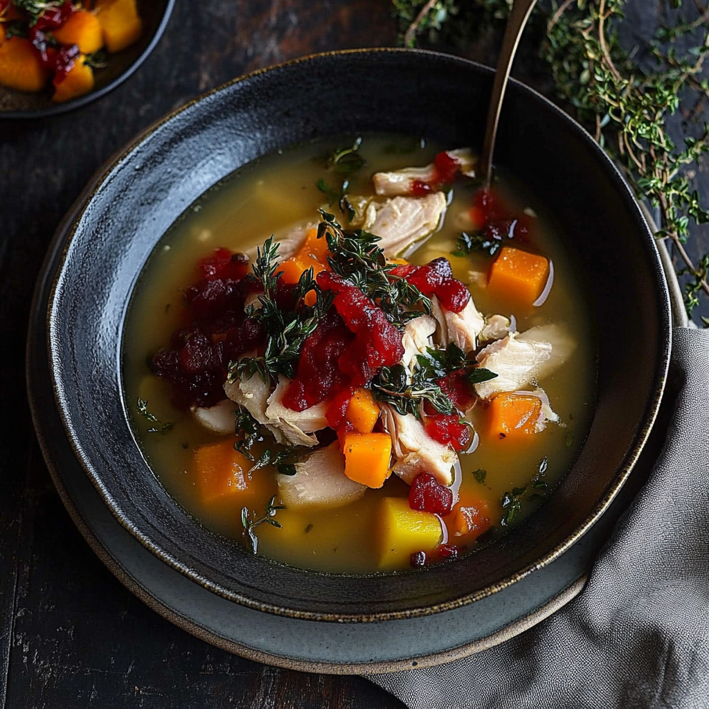 HomeComfort & Family FavoritesFestive Christmas Cranberry Turkey Soup with Herbs Recipe
