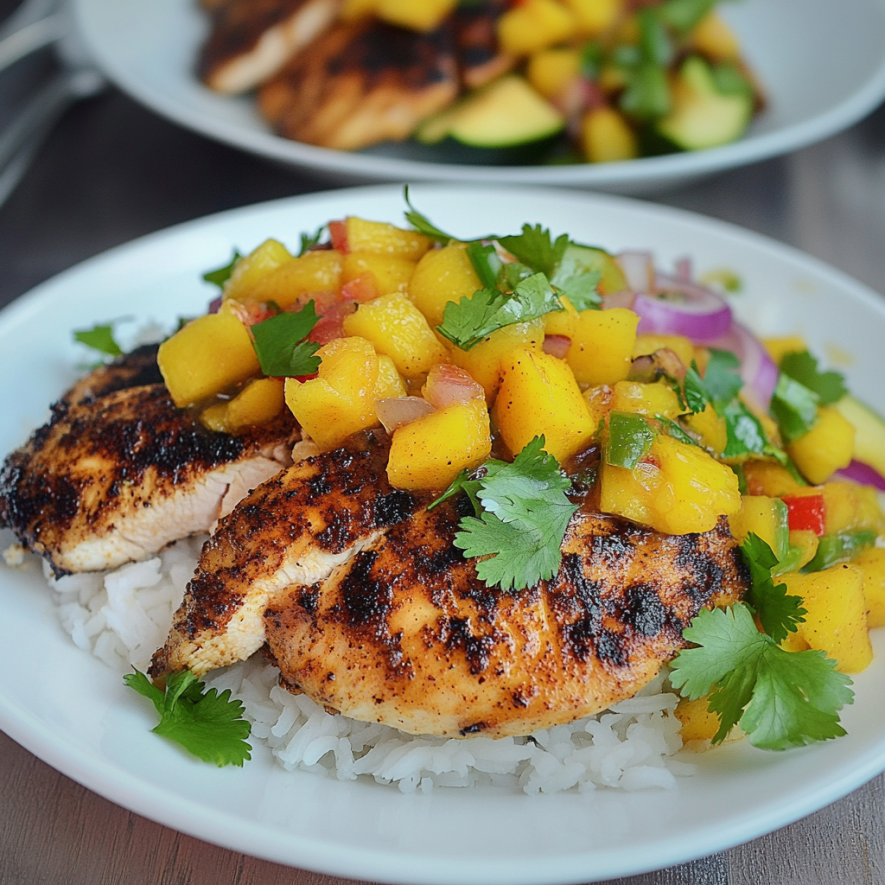 - Let the grilled chicken rest for a few minutes before slicing. Serve topped with mango salsa.