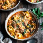 HomeComfort & Family FavoritesHearty Sausage, Spinach & Tortellini Soup Recipe Delight