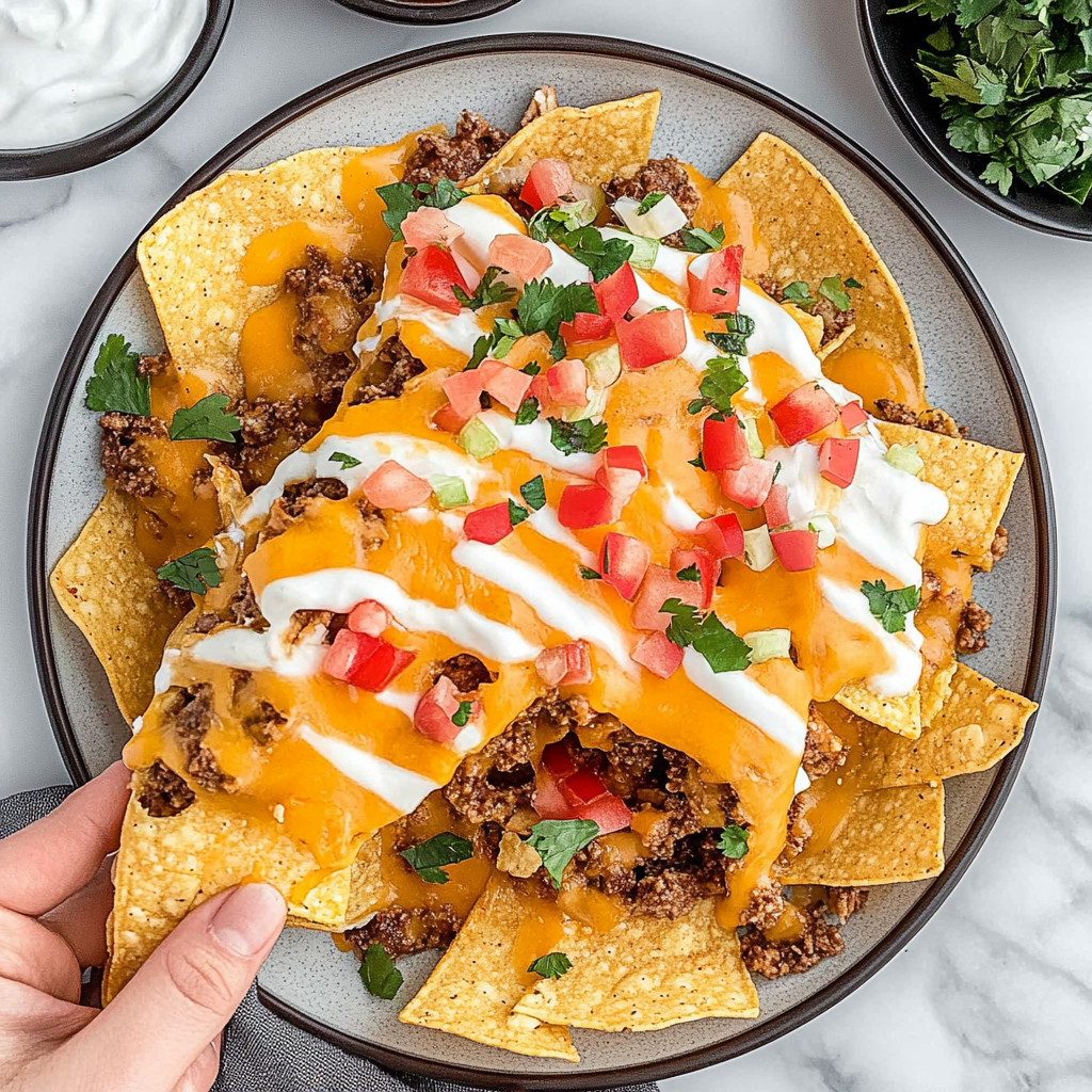 Repeat Layers: Add another layer of chips and repeat with remaining cheese and toppings. Think of it as building a cheesy nacho castle! Don’t forget to keep some cheese aside for a final sprinkle.