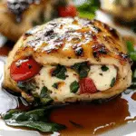 Roasted Red Pepper & Mozzarella Stuffed Chicken is a delightful dish that wraps juicy, tender chicken breasts around a creamy filling of roasted red peppers and gooey mozzarella cheese. Perfect for impressing guests or enjoying a cozy family dinner, this recipe combines vibrant colors and rich flavors to create a meal that will have everyone asking for seconds. Serve it alongside a fresh salad or roasted veggies for a complete and satisfying dinner experience.